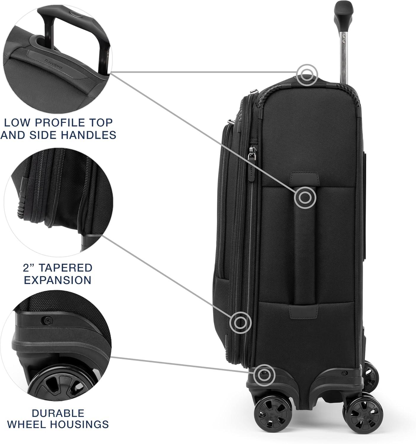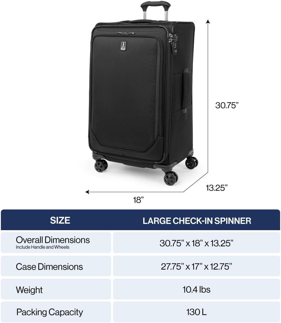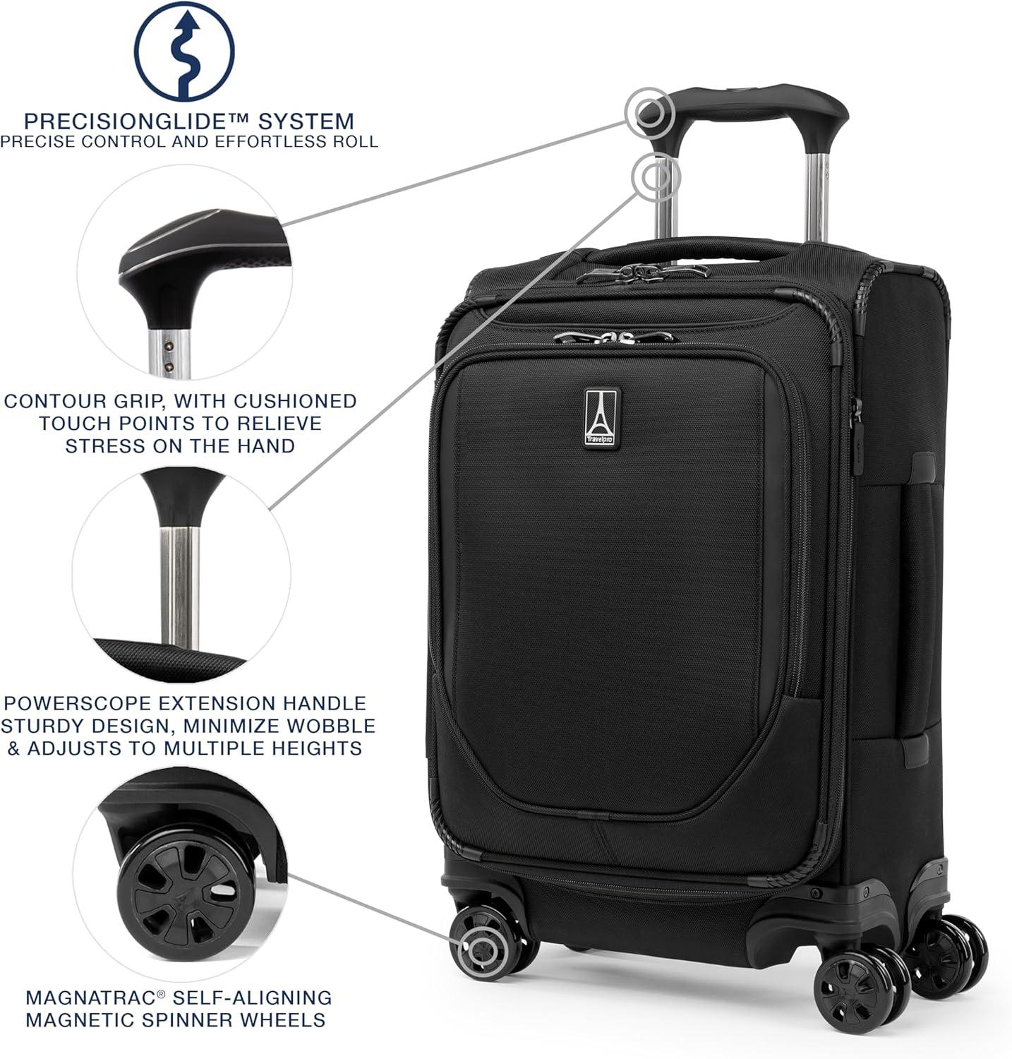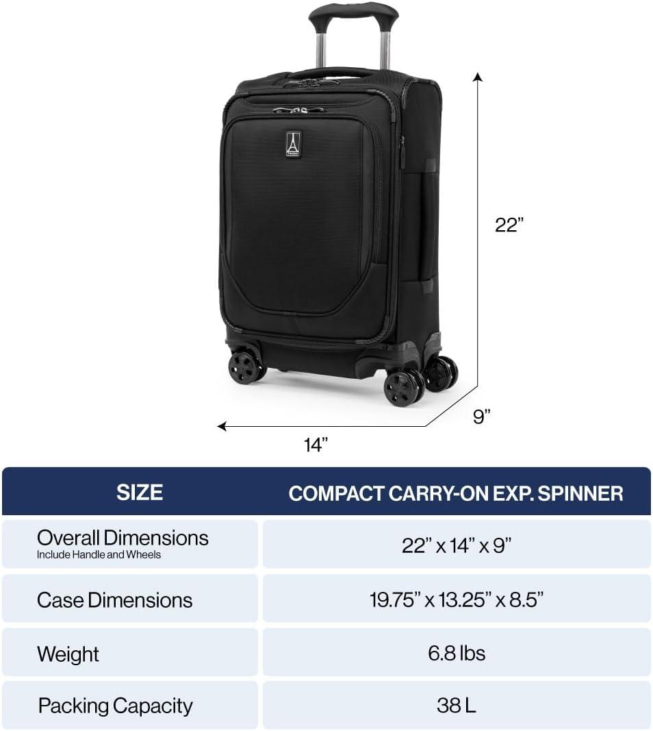 Travelpro is the brand of choice carried by crews from more than 90 worldwide airlines. Our extensive insider knowledge of the functionality and resilience needed by today’s aviation professionals provided inspiration when designing the new Crew Classic assortment specifically for the passenger who appreciates organized packing.Travel well and often with a spinner built for ultimate dependability, mile after mile. The Crew Classic Carry-on Expandable Spinner is lightweight yet exceptionally durable with upgraded organization for ultimate convenience Perfect for business or leisure travel, this full-size carry-on is great for short and medium-length trips with a tip-resistant zippered expansion option to increase packing space when needed. Pack more while staying organized with the removable compression packing organizer, which can also be used as a divider to separate contents in the main compartment. Interior hold-down straps, water-resistant storage, and multiple accessory pockets keep everything where it belongs and easy to find.This spinner’s PrecisionGlide System ensures precise control and effortless roll on eight ultra-durable, 360° MagnaTrac self-aligning spinner wheels led by a four-stop, height-adjustable PowerScope Handle with comfortable Contour Grip. Backed by a Built For a Lifetime Limited Warranty with our 3 Year Trusted Companion Promise, which covers damage caused by an airline or other common carrier.