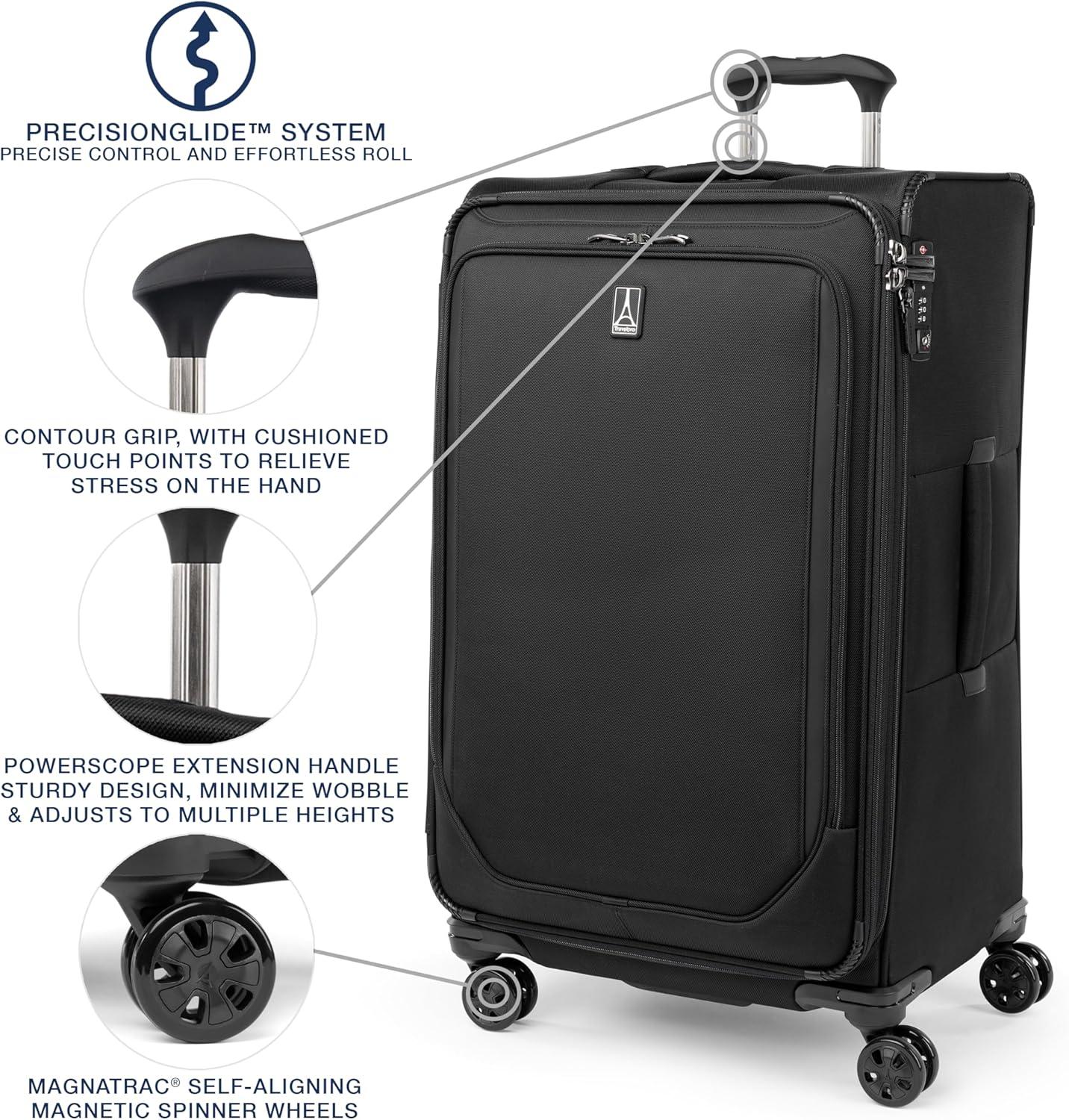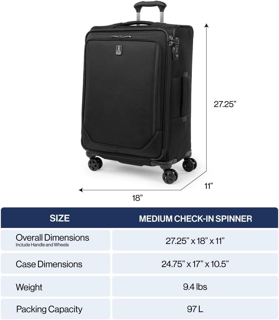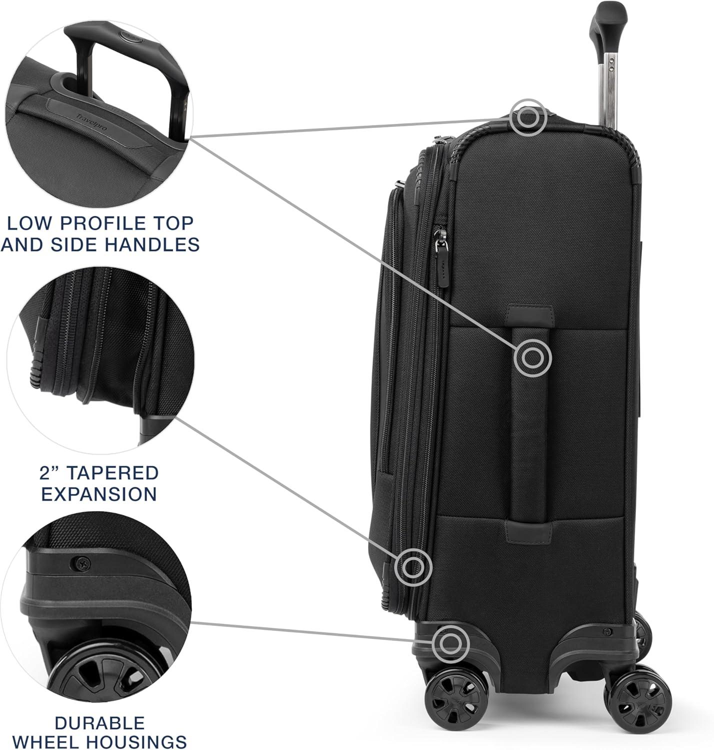 Travelpro is the brand of choice carried by crews from more than 90 worldwide airlines. Our extensive insider knowledge of the functionality and resilience needed by today’s aviation professionals provided inspiration when designing the new Crew Classic assortment specifically for the passenger who appreciates organized packing.Travel well and often with a spinner built for ultimate dependability, mile after mile. The Crew Classic Carry-on Expandable Spinner is lightweight yet exceptionally durable with upgraded organization for ultimate convenience Perfect for business or leisure travel, this full-size carry-on is great for short and medium-length trips with a tip-resistant zippered expansion option to increase packing space when needed. Pack more while staying organized with the removable compression packing organizer, which can also be used as a divider to separate contents in the main compartment. Interior hold-down straps, water-resistant storage, and multiple accessory pockets keep everything where it belongs and easy to find.This spinner’s PrecisionGlide System ensures precise control and effortless roll on eight ultra-durable, 360° MagnaTrac self-aligning spinner wheels led by a four-stop, height-adjustable PowerScope Handle with comfortable Contour Grip. Backed by a Built For a Lifetime Limited Warranty with our 3 Year Trusted Companion Promise, which covers damage caused by an airline or other common carrier.