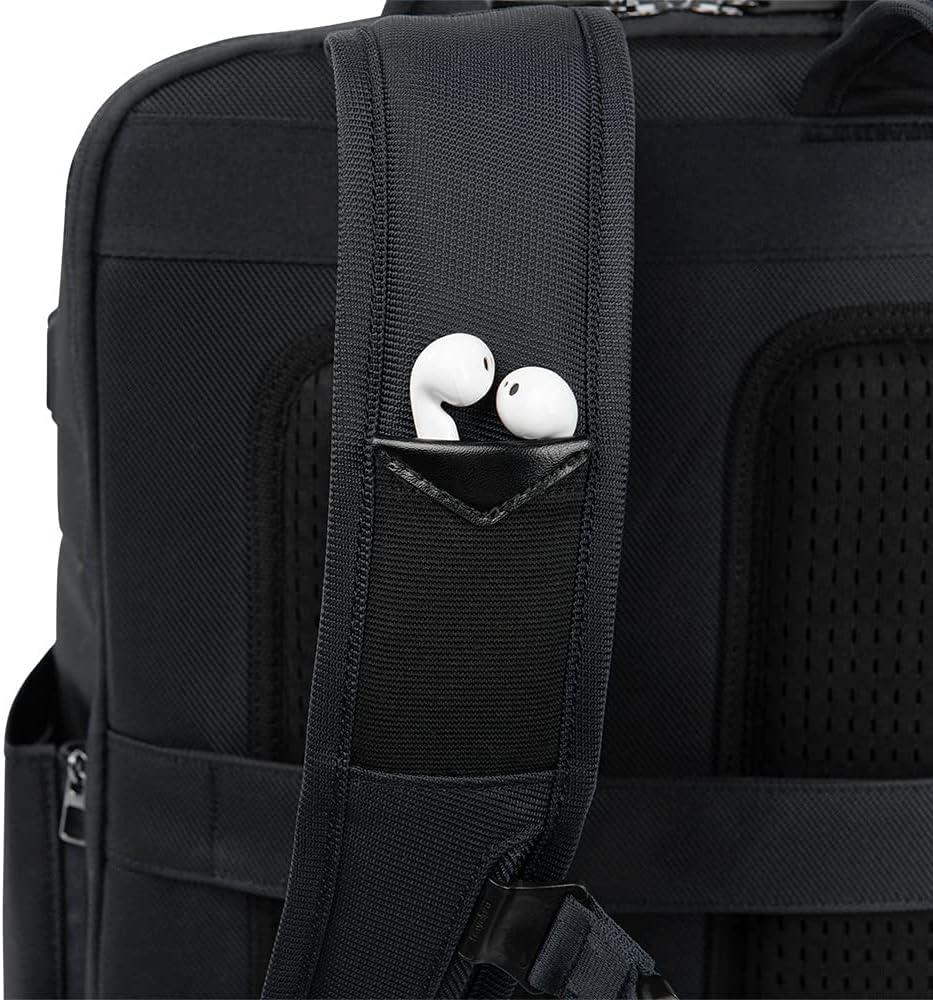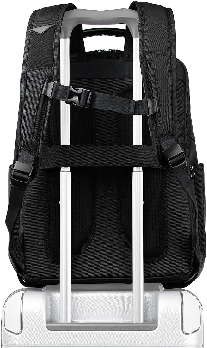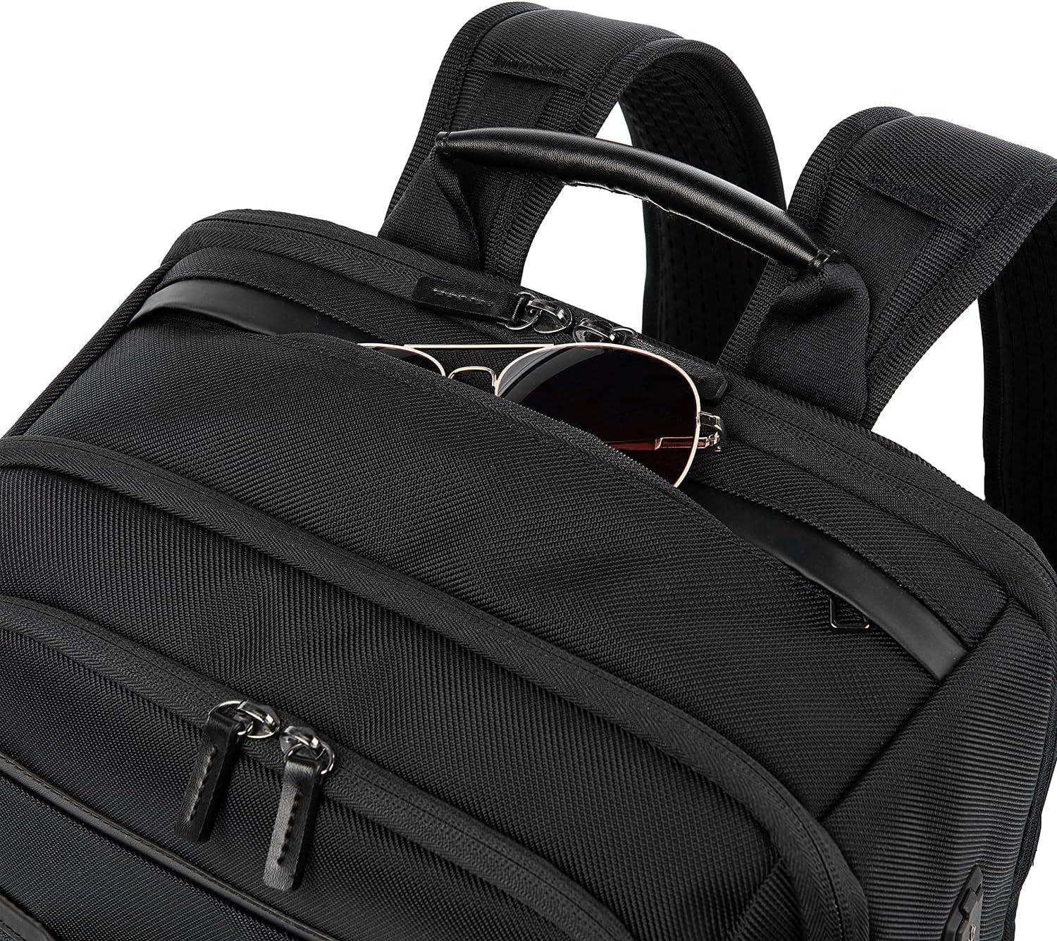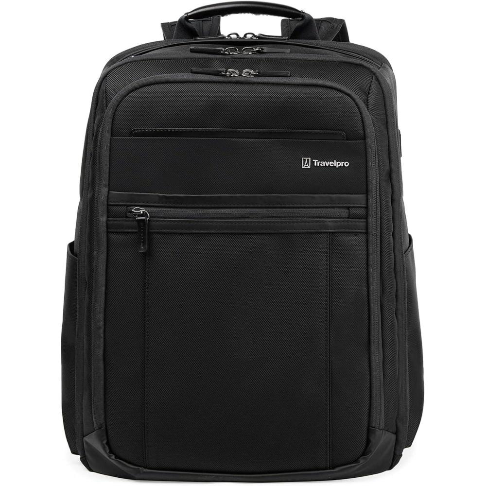 Ready for just about anything, the highly-durable Travelpro® Crew™ Executive Choice™ 3 Large Backpack with built-in charging ports and ample packing space offers endless uses as your well-organized satellite office, an all-in-one for short trips, a stackable companion to your other luggage and your new favorite personal backpack suitcase for travel. Stay connected to everything you need using external USB A and C ports (Patent Pending) with fast charge capabilities to power up electronics on the go. This carryon backpack has a dedicated pocket with connected USB cord stores your power bank securely (battery not included), padded laptop and tablet sleeves offer protection for electronics, and the spacious interior is also outfitted with compartments and integrated key leash for built-in organization. Crafted with high-quality, stain-resistant nylon fabric and leather accents, this carry on luggage backpack is loaded with convenience features, including a Travelpro® ID TheftBlock™ pocket that protects credit cards and passports from loss and identity theft, the Travelpro® QuickSlip™ front pocket with magnetic closure for quick-access cell phone storage, a tricot-lined, exterior top-zip sunglass pocket and exterior, lie-flat side pockets that expand to hold water bottles or an umbrella. When it’s time to move, the padded airflow back panel and adjustable, padded shoulder straps provide superior comfort and a dedicated strap pocket for earbud storage. For hands-free mobility, an unobtrusive rear stacking strap fits around the extension handle of any Rollaboard® or spinner suitcase. This backpack for airplane travel is backed by our Built For a Lifetime Limited Warranty with Trusted Companion Promise that even covers damage caused by airlines or other common carriers for the first year of the lifetime warranty.