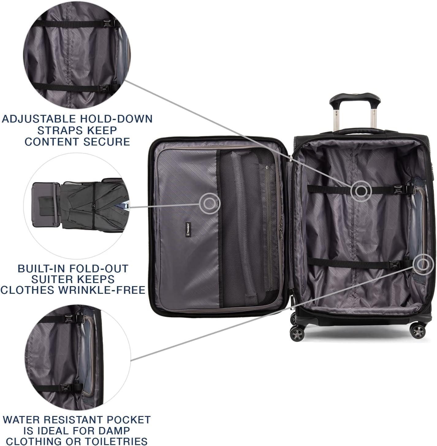 Travelpro Maxlite 5 Softside Expandable Luggage with 4 Spinner Wheels, Lightweight Suitcase, Men and Women, Ensign Blue, Checked-Medium 25-Inch(Dusty Rose Pink)