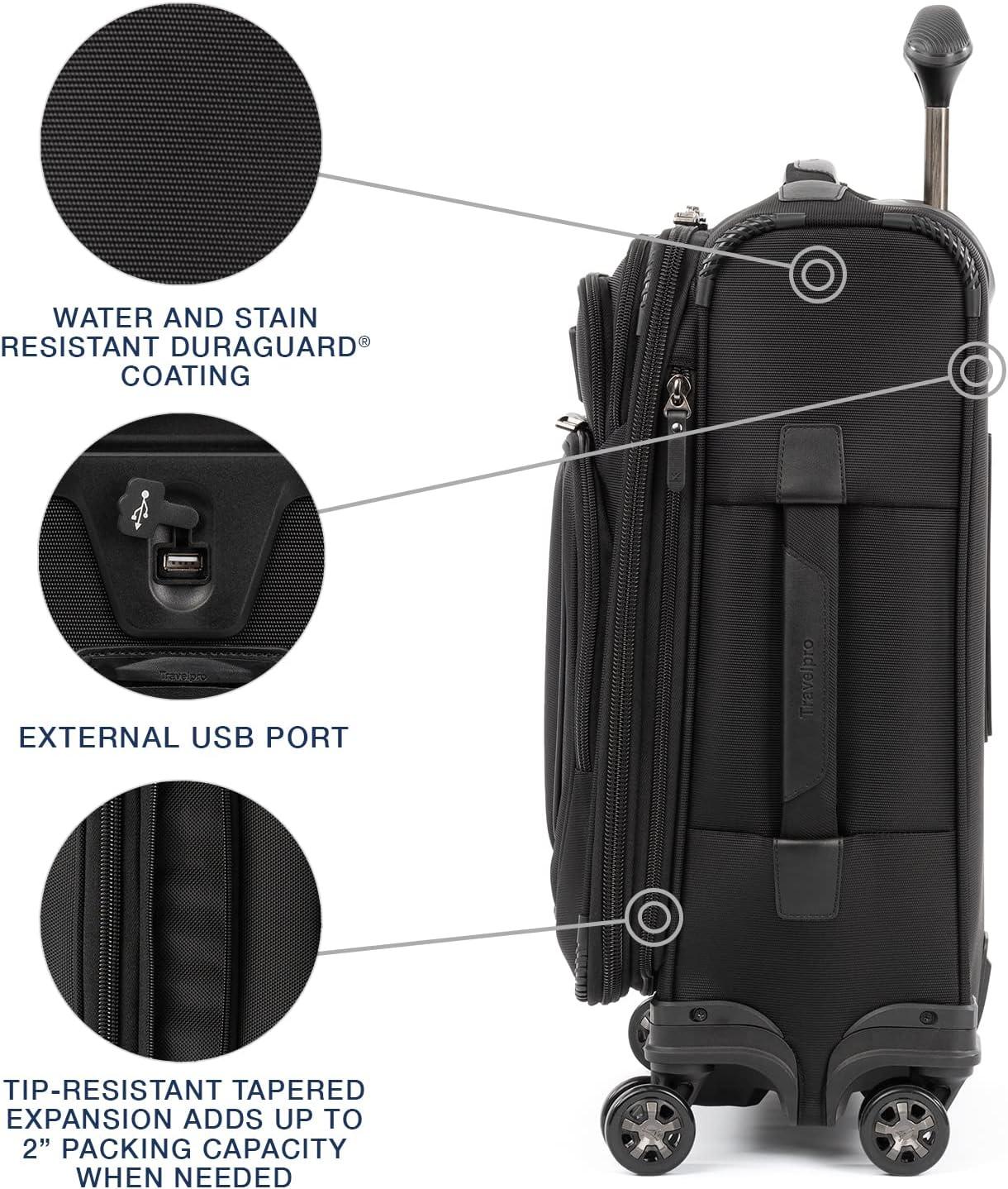 Travelpro Maxlite 5 Softside Expandable Luggage with 4 Spinner Wheels, Lightweight Suitcase, Men and Women, International, Slate Green, Carry-on 19-Inch(Black)