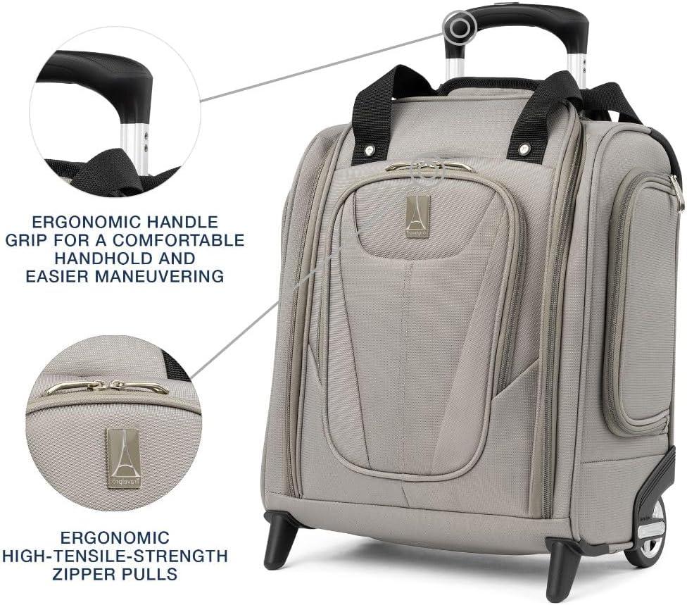 Like traveling with a personal assistant, the Travelpro Rolling UnderSeat Carry-On keeps you effortlessly organized. It features a padded laptop/tablet sleeve, removable compartment for cosmetics or accessories, quick-access external pockets, and a spacious main compartment with a large zippered opening. Compact enough to fit under most domestic airline seats, it’s perfect solo or paired with other luggage. The lightweight PowerScope® Lite handle reduces wobble, inline wheels ensure smooth rolling, and a rear stacking strap lets you securely stack it atop another bag. Fit-to-Fly tested for most US airline overhead bins. Backed by Travelpro’s Limited Lifetime Coverage and 1-year Trusted Companion Promise, covering repairs and shipping for airline or carrier damage.
