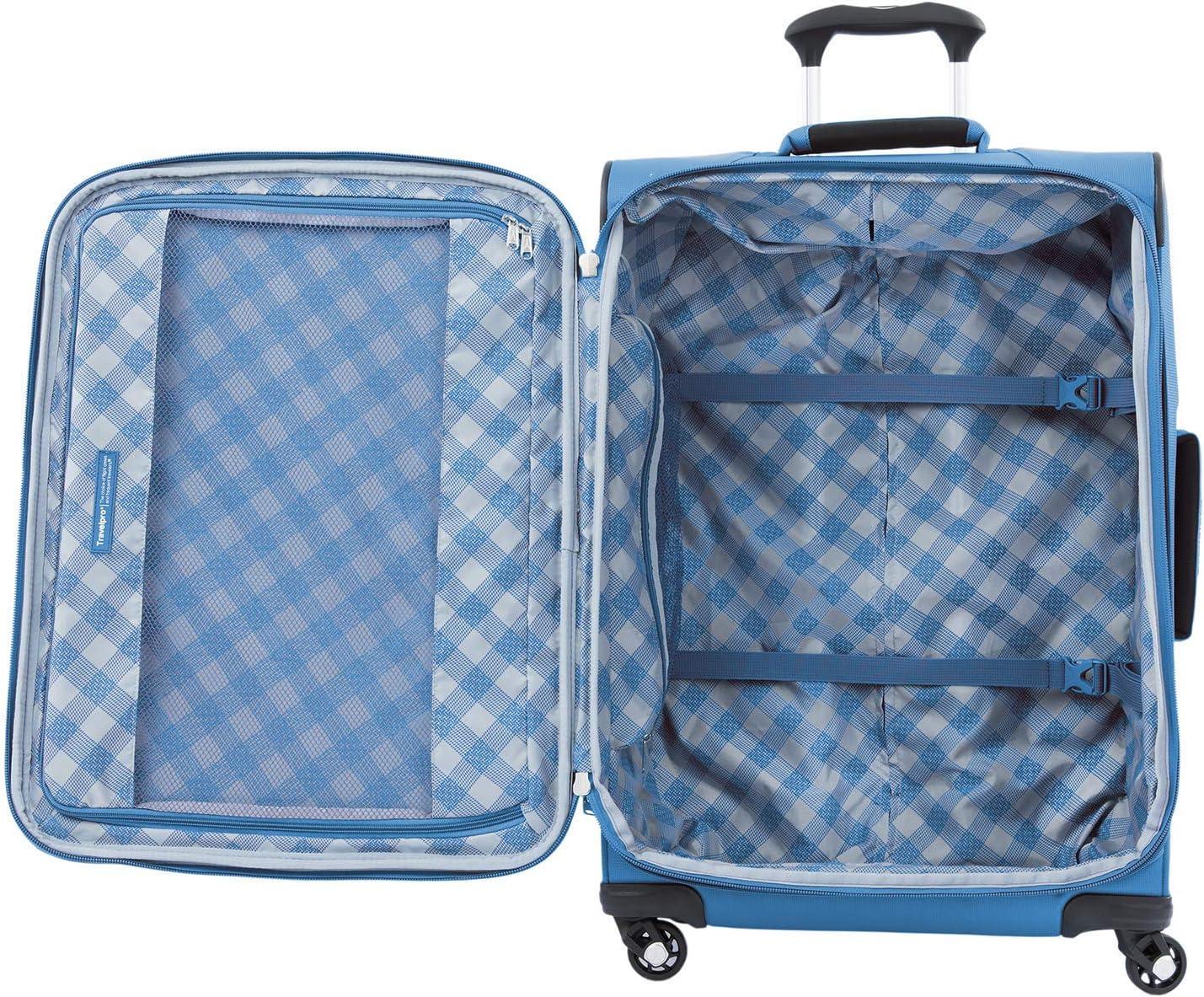 Travelpro Maxlite 5 Softside Expandable Luggage with 4 Spinner Wheels, Lightweight Suitcase, Men and Women, Ensign Blue, Checked-Medium 25-Inch(Azure Blue)
