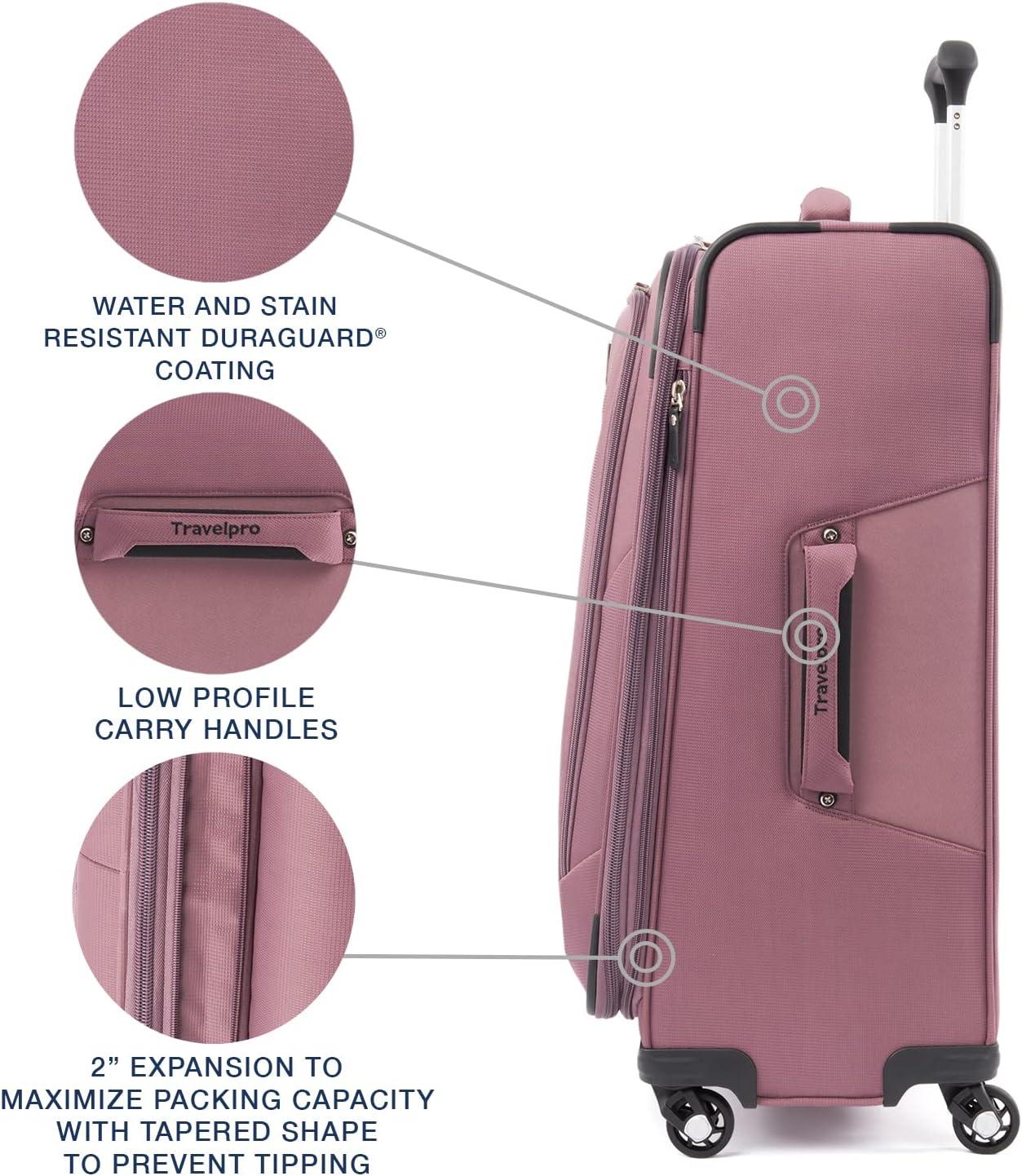 Travelpro Maxlite 5 Softside Expandable Luggage with 4 Spinner Wheels, Lightweight Suitcase, Men and Women, Ensign Blue, Checked-Medium 25-Inch(Dusty Rose Pink)