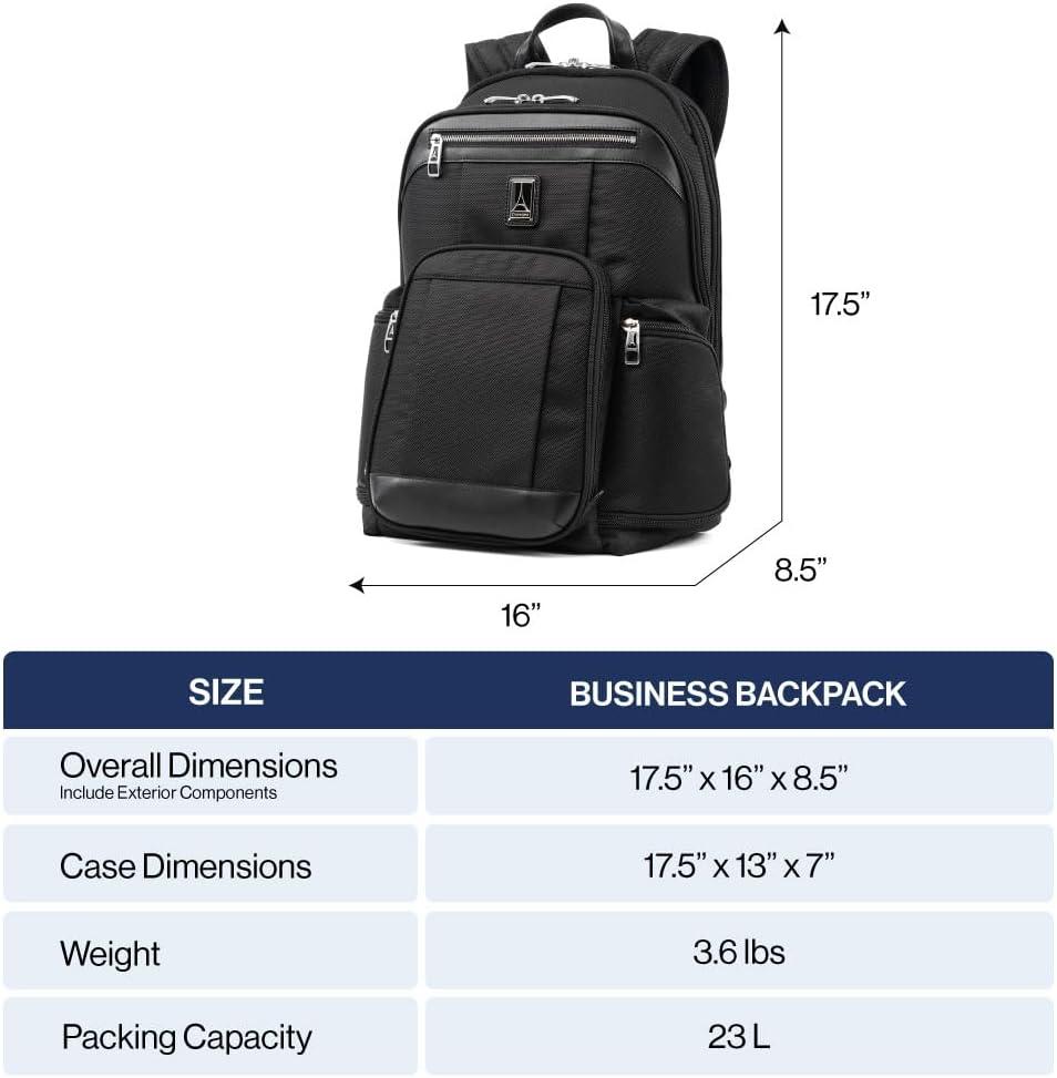 Travelpro Platinum Elite Business Laptop Backpack, Fits up to 17.5 Inch Laptop, Work, Travel, Men and Women, Shadow Black(Shadow Black)