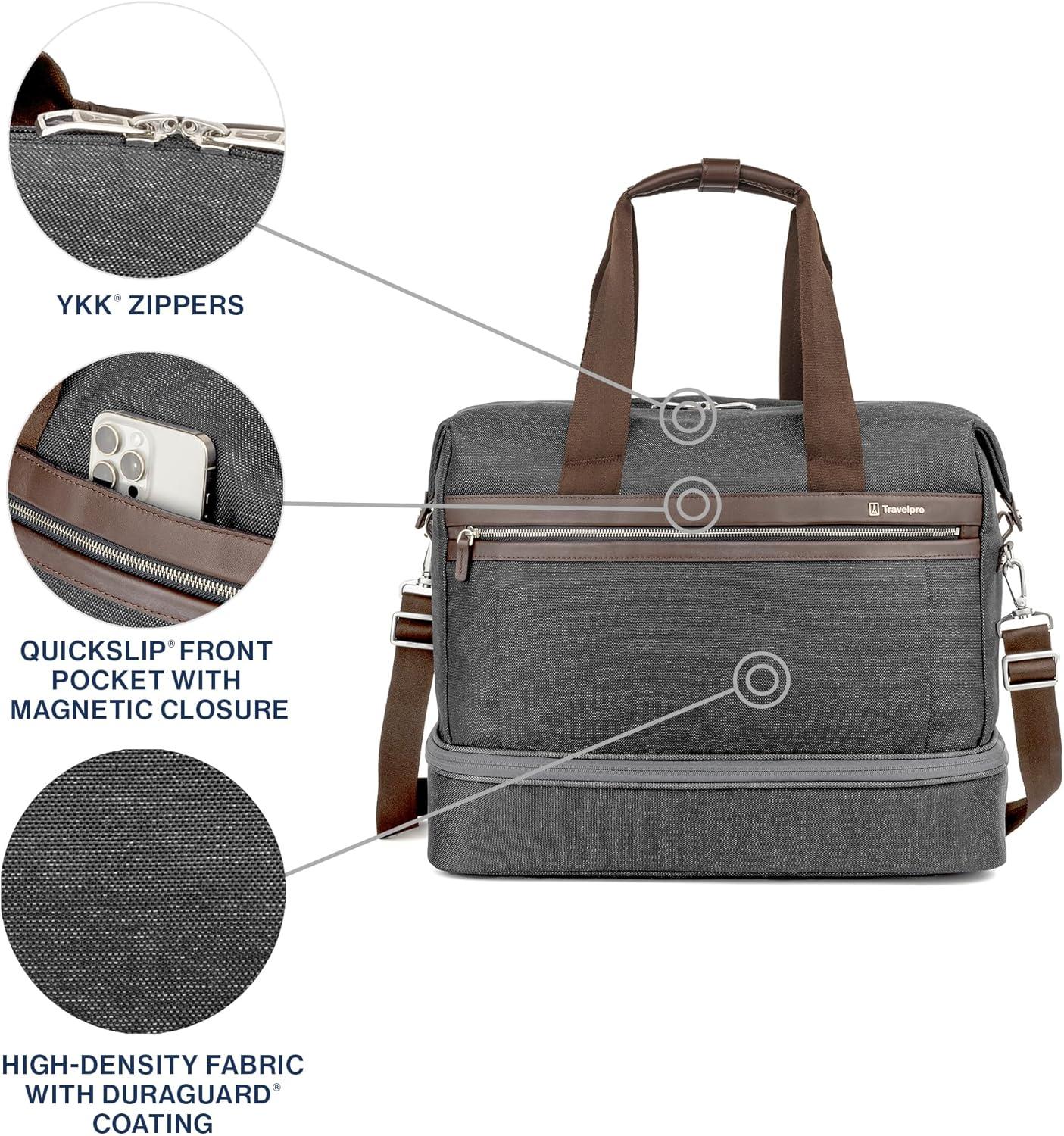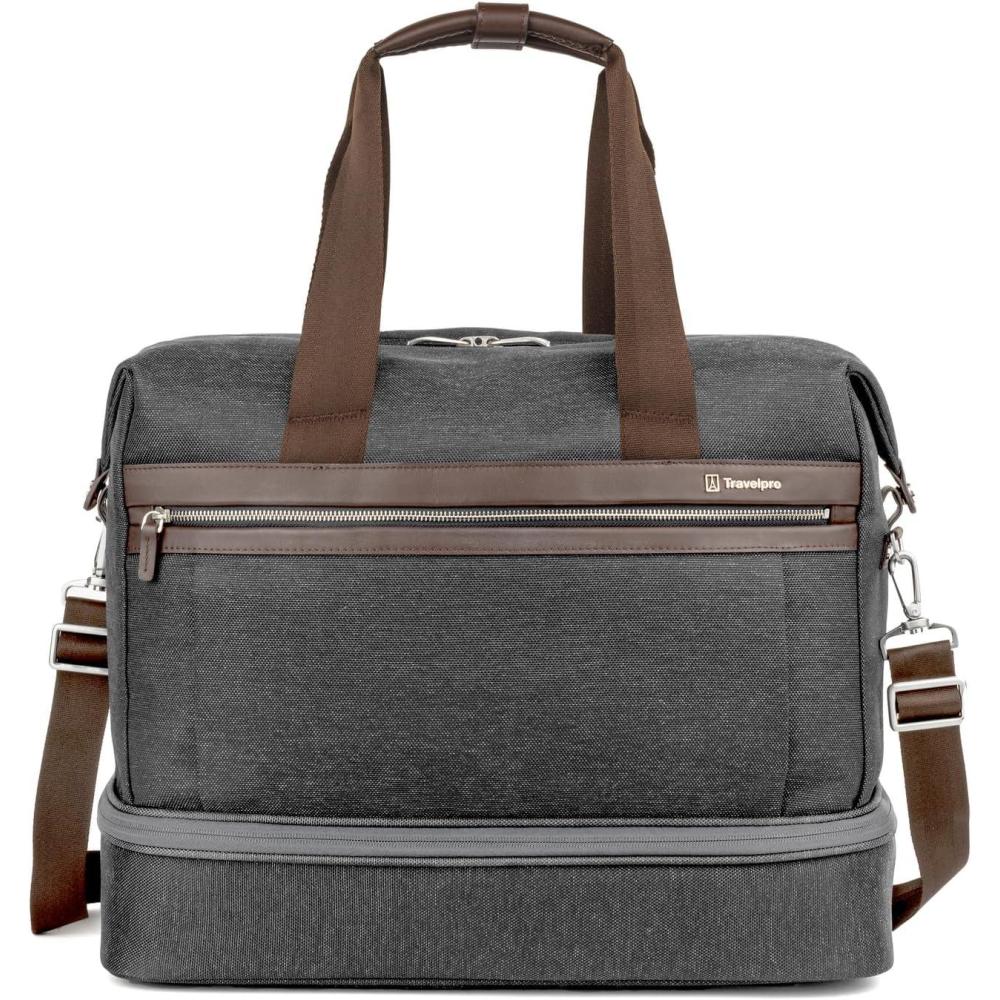 Travelpro Platinum Elite Carry on Soft Travel Drop-Bottom Weekender Bag, Overnight, Men and Women(Vintage Grey)