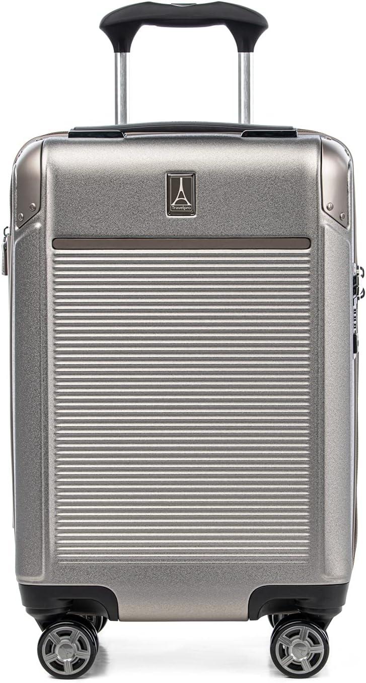 Travelpro Platinum Elite Hardside Expandable Carry on Luggage, 8 Wheel Spinner, TSA Lock, Hard Shell Polycarbonate Suitcase, True Navy Blue, Compact Carry on 20-Inch(Metallic Sand)