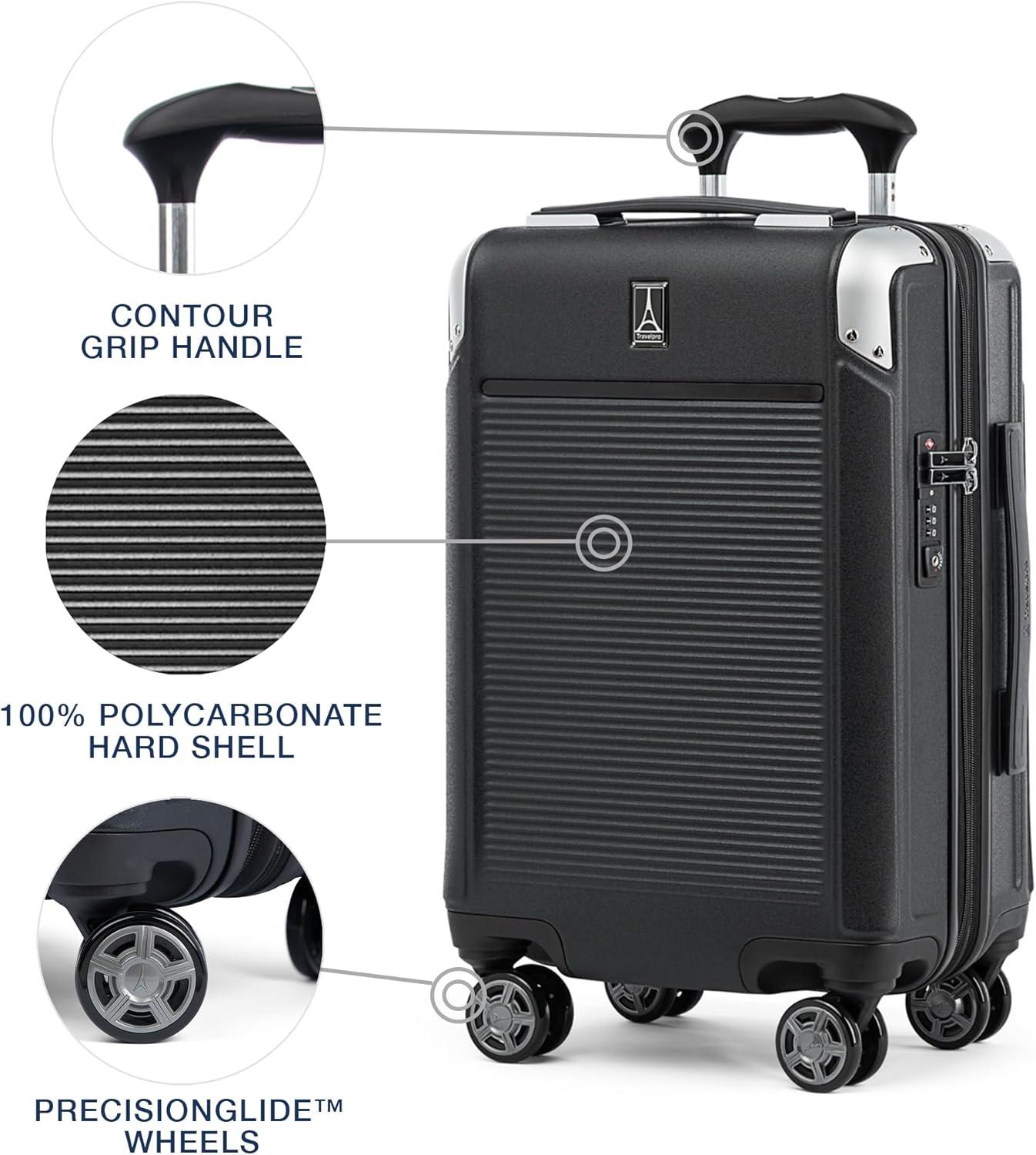 Travelpro Platinum Elite Hardside Expandable Carry on Luggage, 8 Wheel Spinner, TSA Lock, Hard Shell Polycarbonate Suitcase, True Navy Blue, Compact Carry on 20-Inch(Shadow Black)