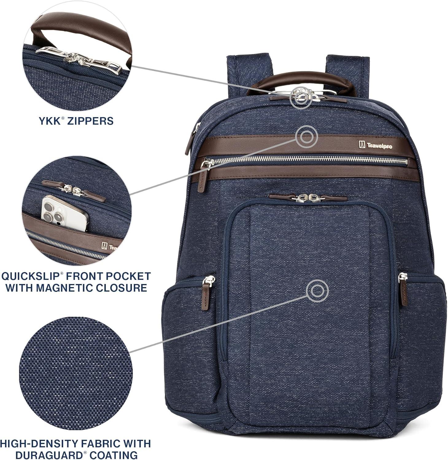 Travelpro Platinum Elite Slim Laptop Travel Backpack, Fits up to 16 Inch Laptop, Business, Water Resistant, Men and Women, Vintage Grey(True Navy Blue)