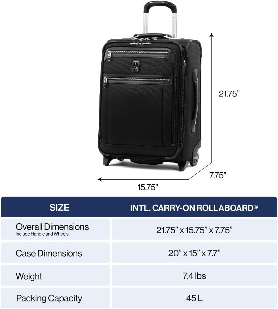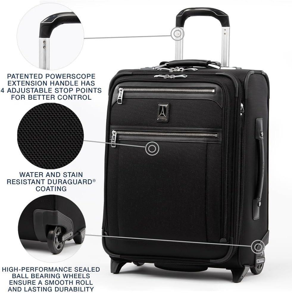 Travelpro Platinum Elite Softside Expandable Carry on Luggage, 2 Wheel Upright Suitcase, USB Port, Men and Women, International, Shadow Black, Carry On 20-Inch(Shadow Black)