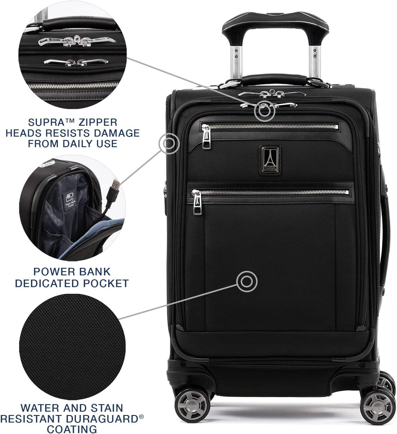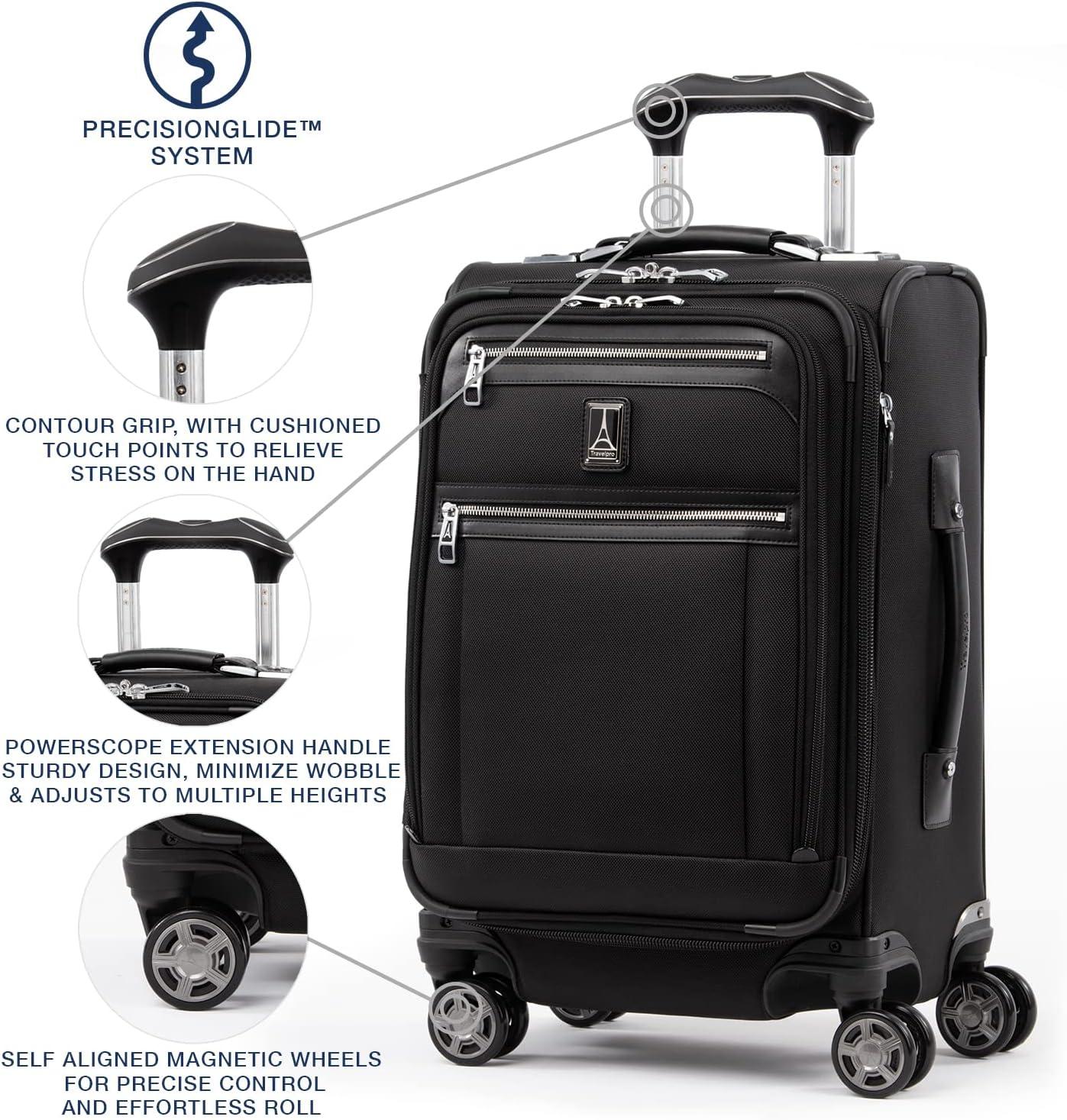 Travelpro Platinum Elite Softside Expandable Carry on Luggage, 8 Wheel Spinner Suitcase, USB Port, Laptop and Tablet Sleeves, Men and Women, Shadow Black, Carry On 20-Inch