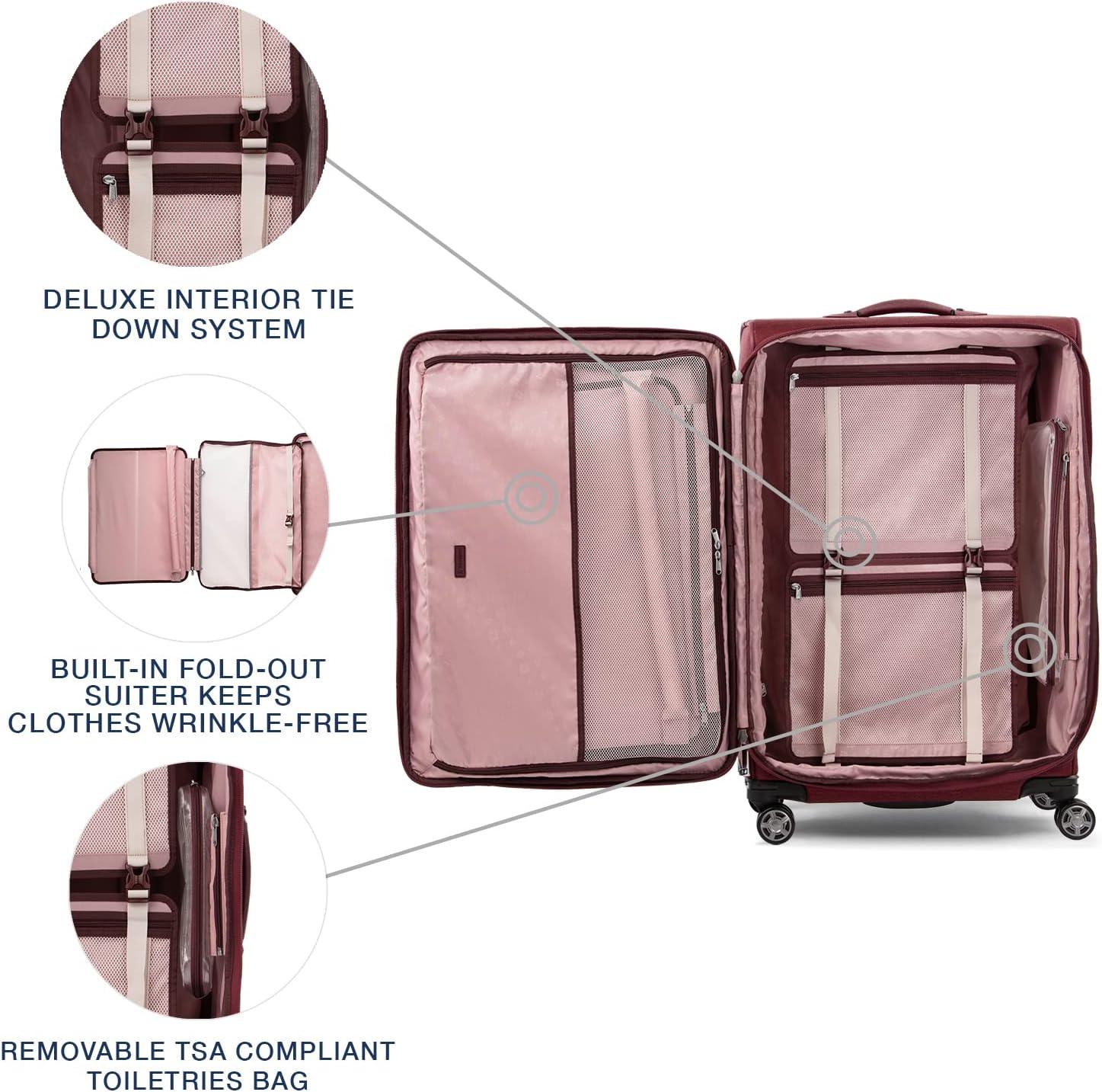 Travelpro Platinum Elite Softside Expandable Carry on Luggage, 8 Wheel Spinner Suitcase, USB Port, Suiter, Men and Women, True Navy Blue, Carry On 21-Inch(Bordeaux Red)