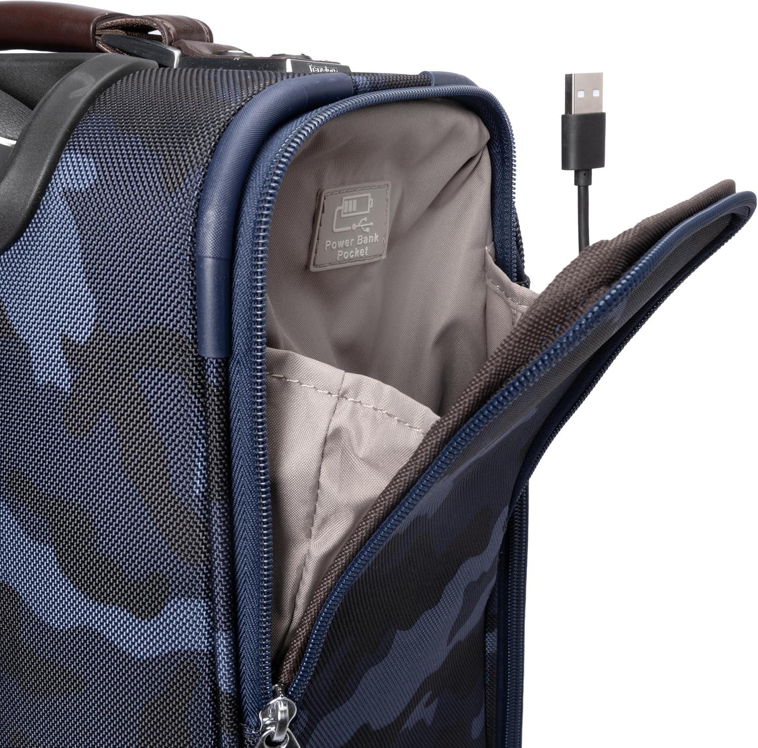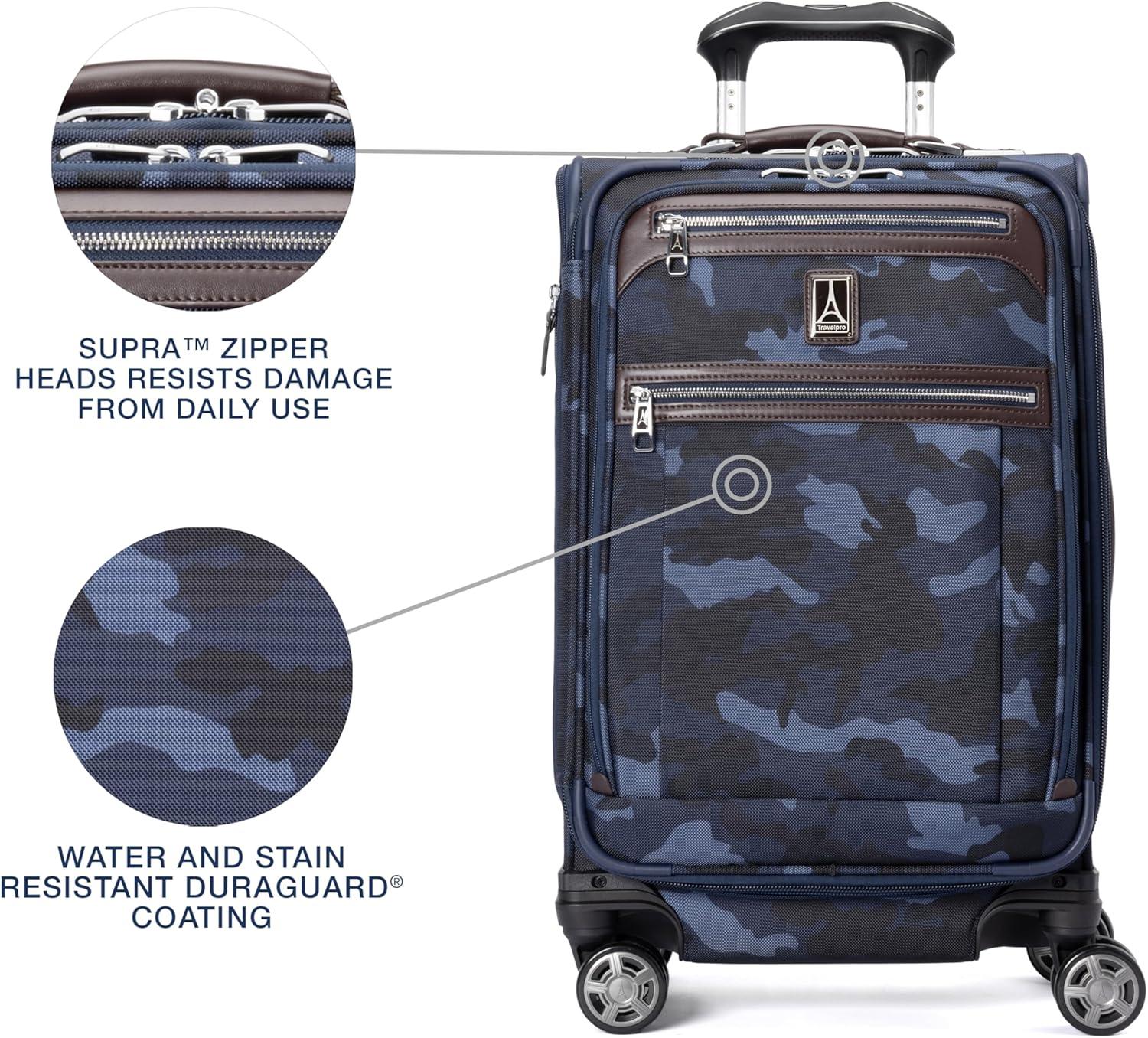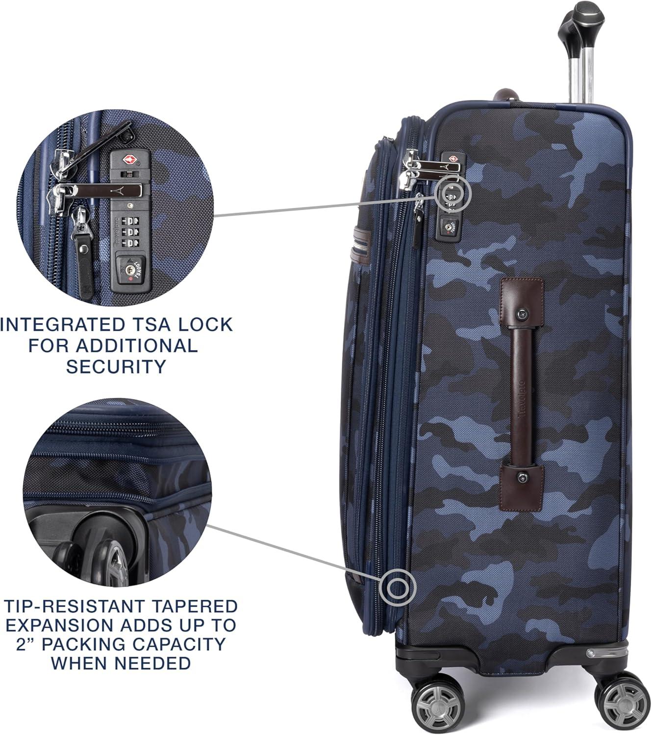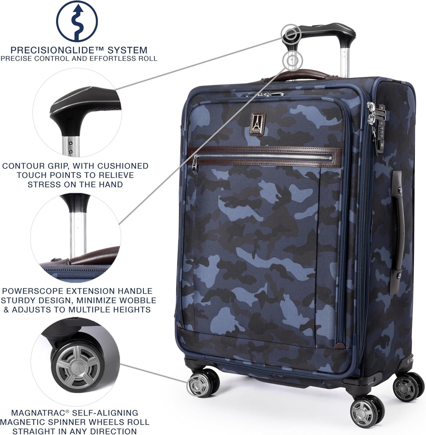 Travelpro Platinum Elite Softside Expandable Checked Luggage, 8 Wheel Spinner Suitcase, TSA Lock, Men and Women, Navy Camouflage, Checked Medium 25-Inch(Navy Camouflage)