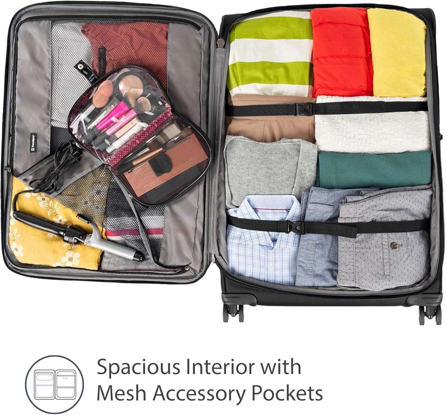 Travelpro Tourlite Softside 3-Piece Set, Expandable Luggage, 4 Spinner Wheels, Lightweight Suitcase, 21″ Carry-On, 29 Check Large, Black(Black)