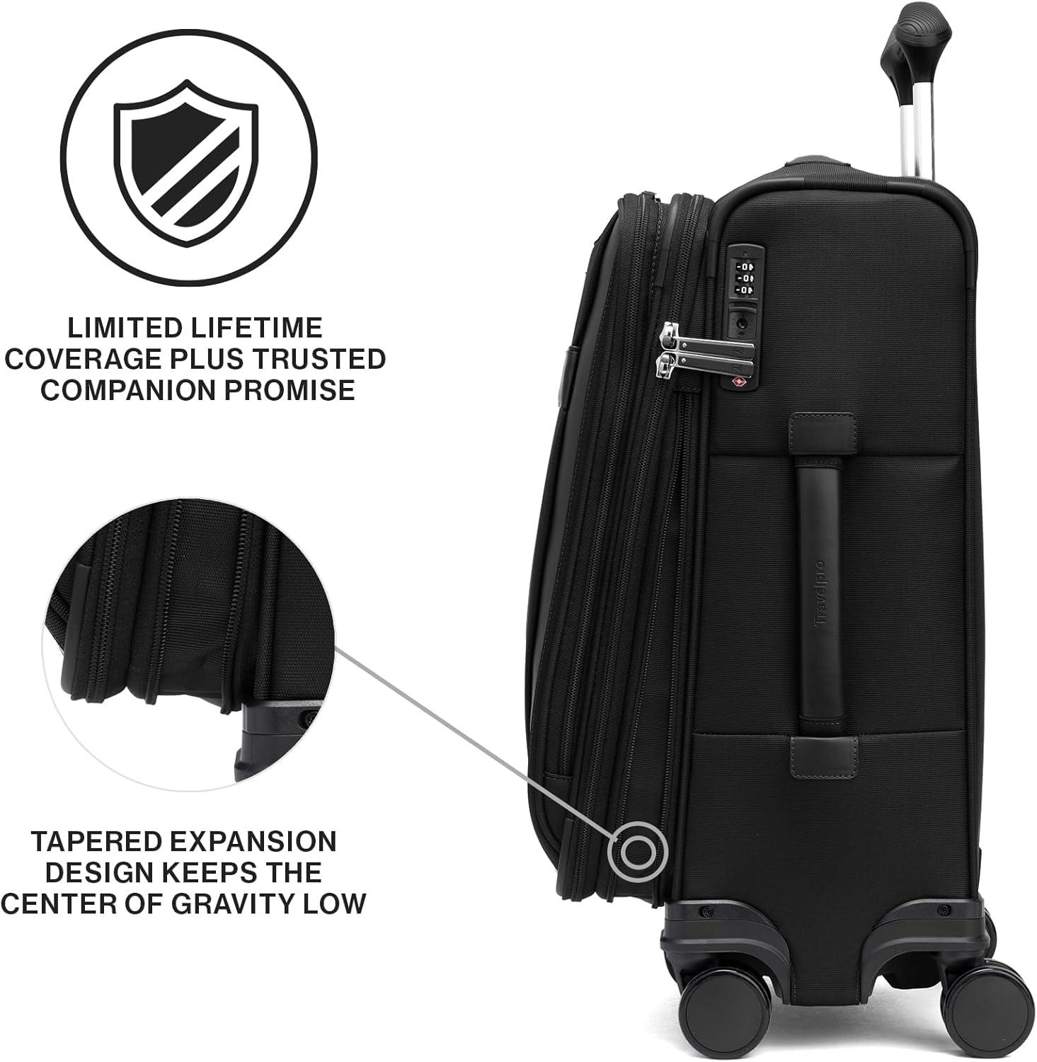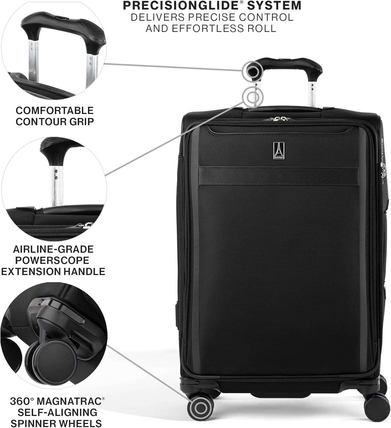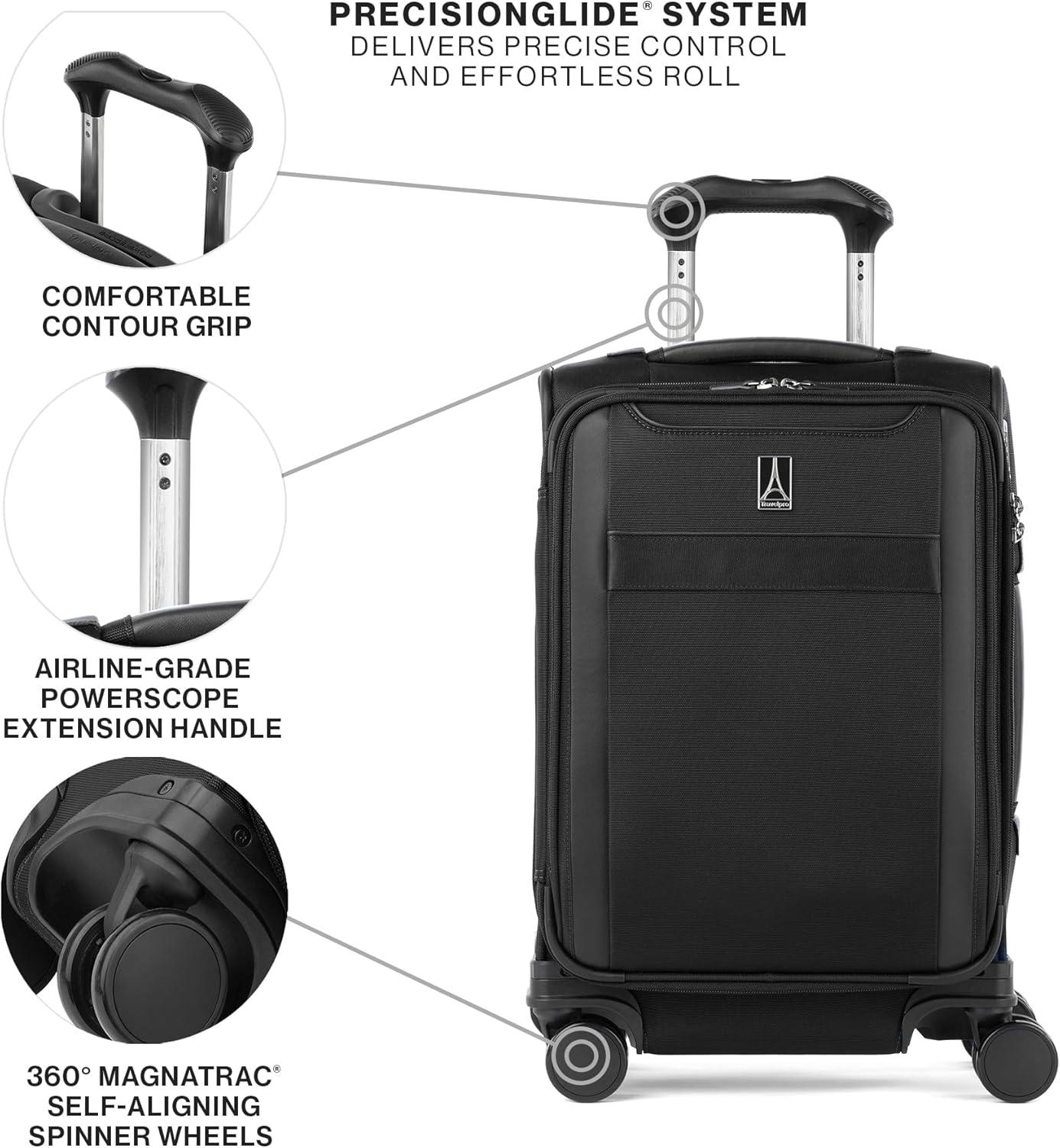 Suitcase has PrecisionGlide System that delivers precise control and effortless roll on eight ultra-durable, 360 MagnaTrac self-aligning spinner wheels led by an airline-grade 4- stop PowerScope Extension Handle with comfortable Contour Grip.